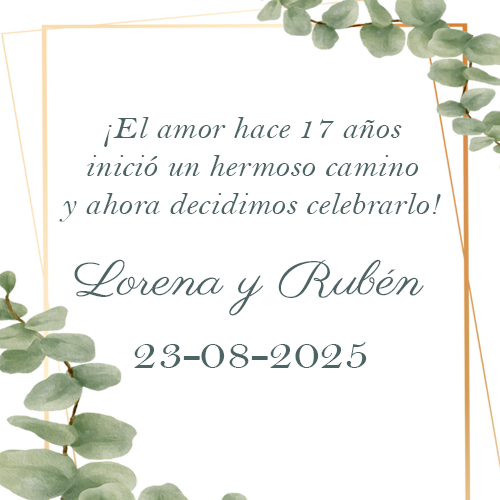 Después de casi dos décadas de risas, sueños compartidos y un hermoso cuento en familia, hemos decidido dar el paso y unir nuestras vidas en matrimonio.